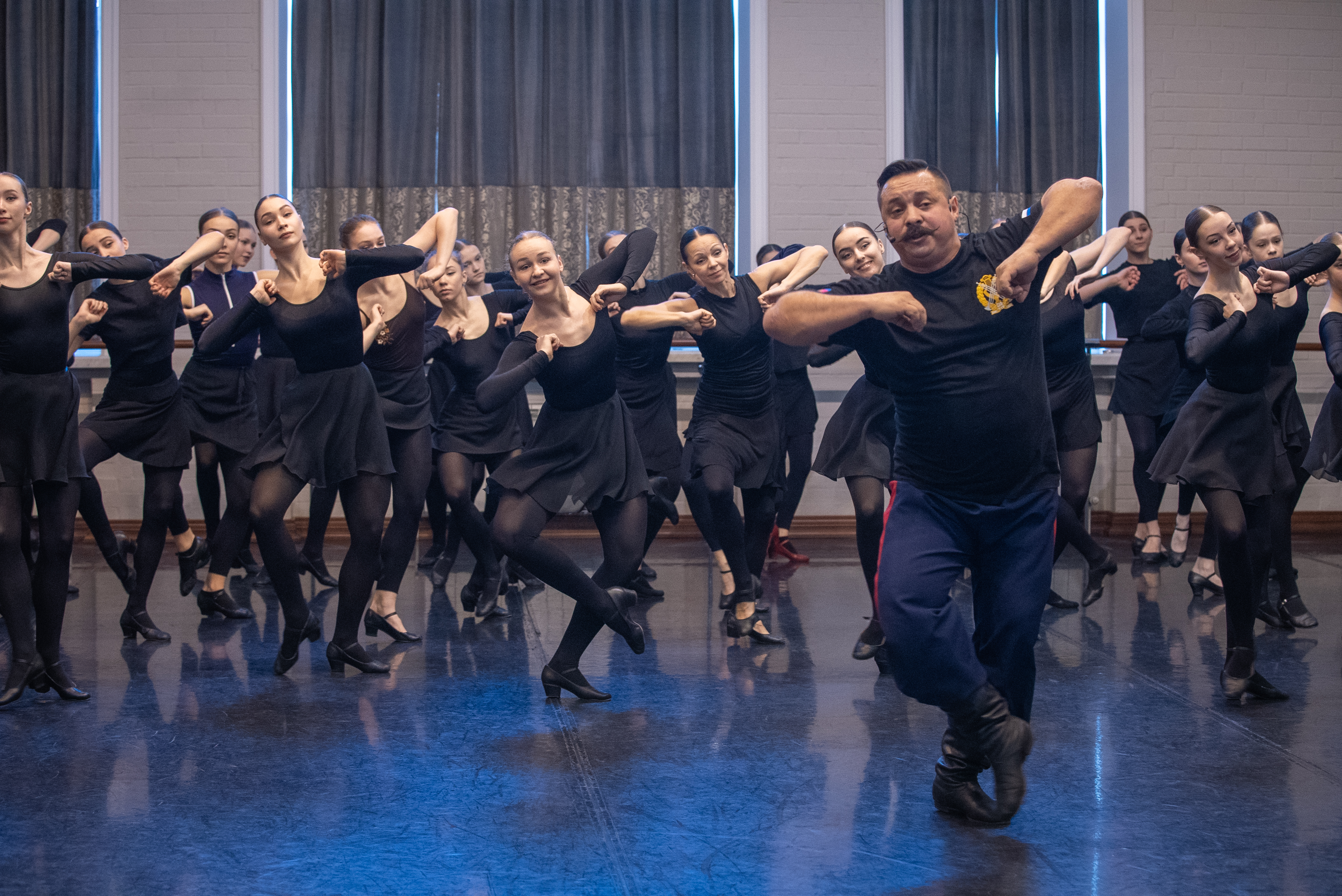 С первых минут творческой встречи, Ильдар Равильевич погрузил участников проекта в мир казачьей культуры. В дружеской, но одновременно строго-организованной рабочей атмосфере, танцовщики и хореографы осваивали комбинации из танца черноморских казаков «Молодычка» (хореография - Народного артиста РФ, Народного артиста Республики Адыгея, Заслуженного деятеля искусств России, Украины и Республики Адыгея Н.В. Кубаря), а также некрасовских казаков, вобравших в свою хореографию элементы и характер балканской, русской и турецкой культур.